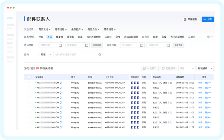 • 囊括 172 个国家,8.5亿+企业联系方式,助您外贸找客户