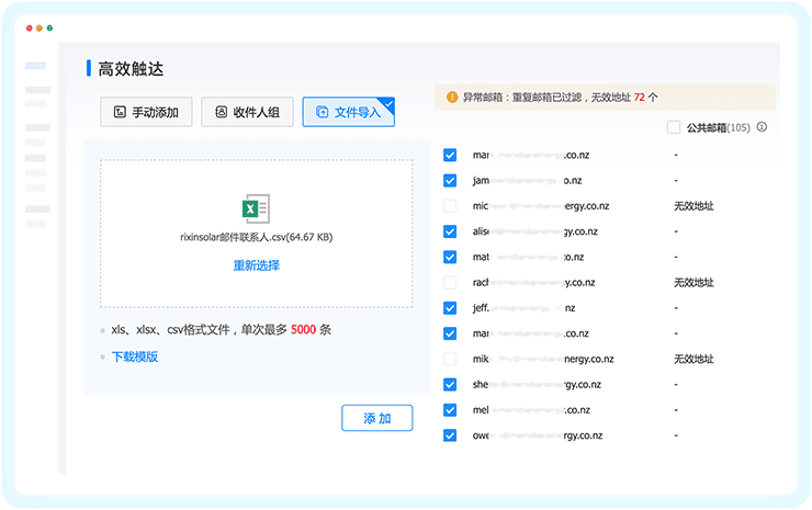 行业独有,海外服务器+动态IP地址,90%高抵达率,内置多种国际化邮件营销模板,支持查看与分析打开率、点击率等数据,助力营销策略优化。