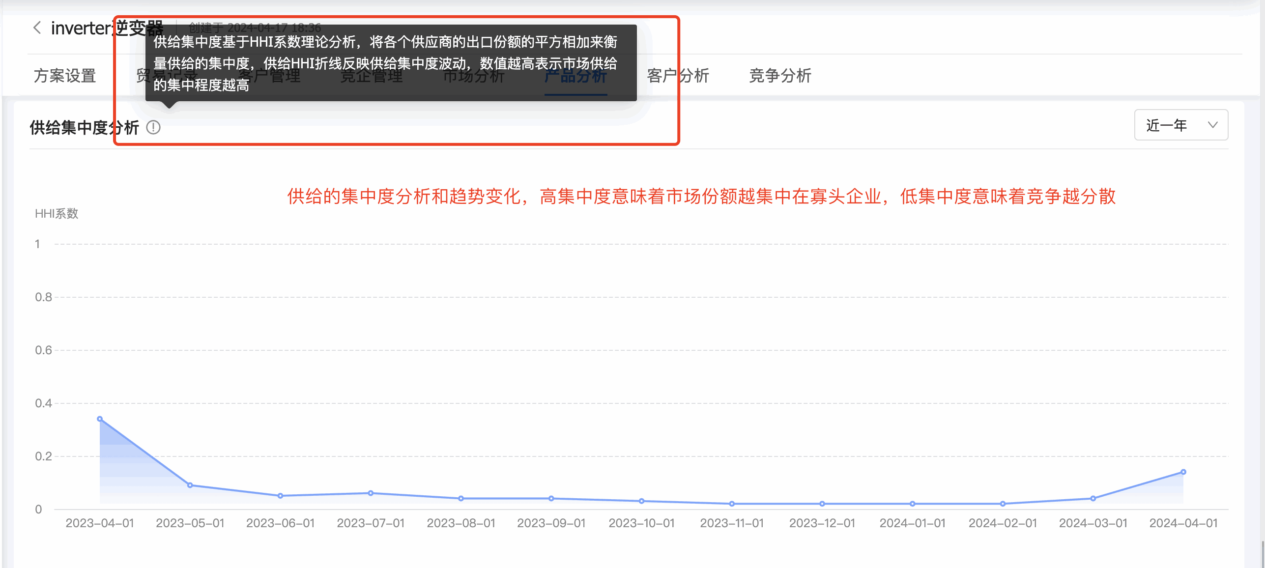 3. USDT钱包商情洞察竞争分析新增「竞争集中度分析」:基于行业集中度(Concentration Ratio)理论来计算目标产品竞企竞争集中度,出口目标产品前8家最大的企业所占市场份额的总和,是对整个竞争市场结构集中程度的测量指标